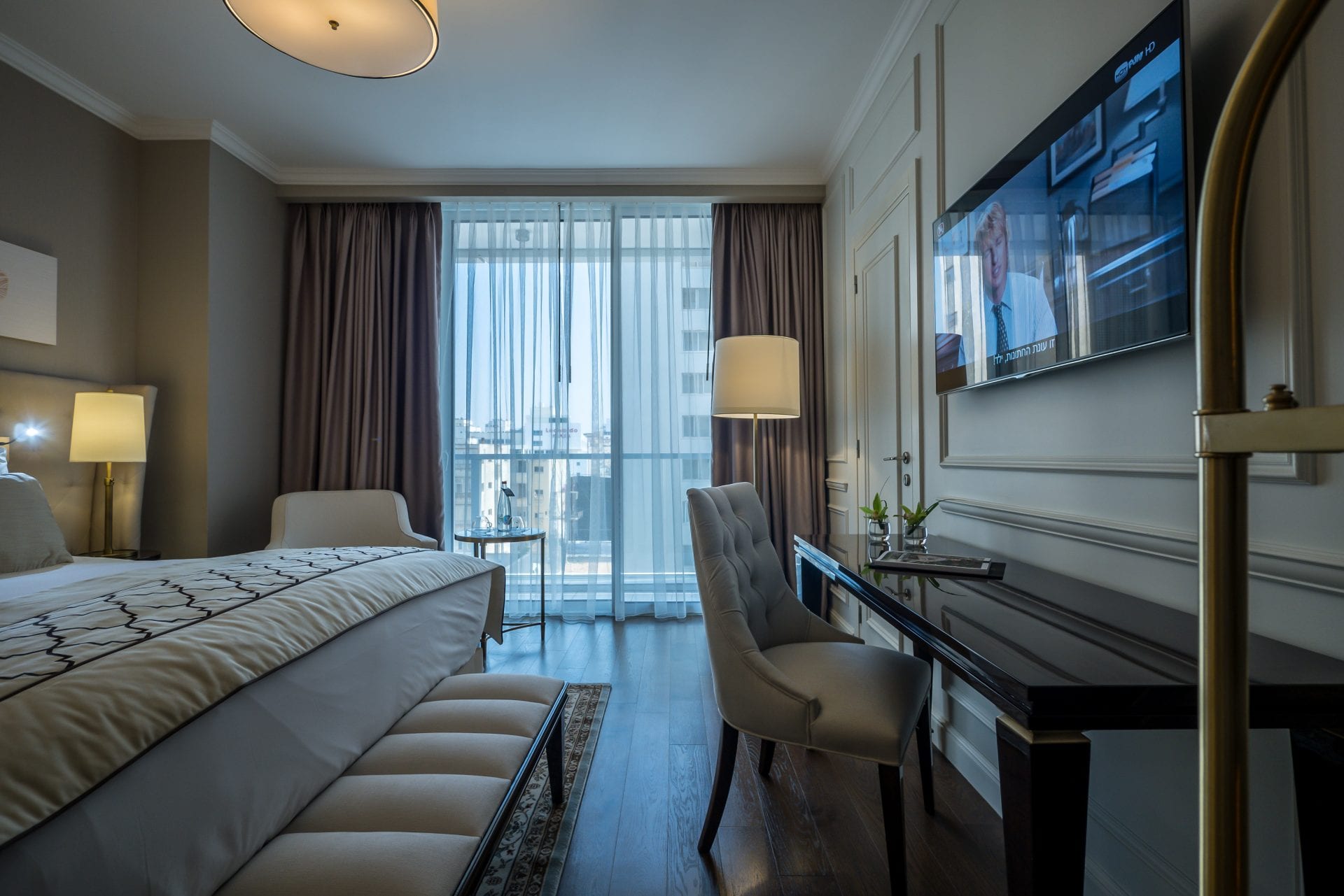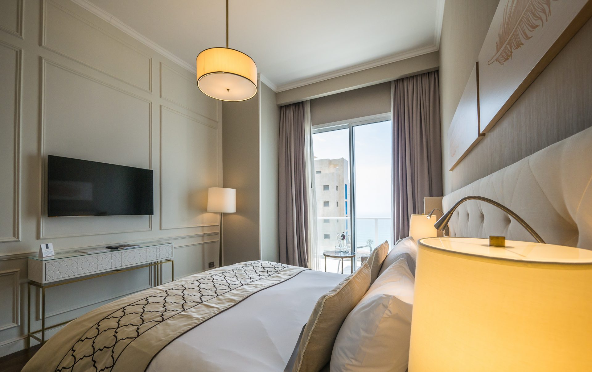 כל חדר DELUXE מכיל מיטת KING SIZE מפוארת או 2 מיטות יחיד עם נוף פנורמי ישיר אל הים. חדר דה-לוקס משתרע על שטח של כ- 30 מ”ר, וכולל מרפסת גדולה הצופה לים המאובזרת בשולחן וכסאות. בחדר מקלחת, אינטרנט מהיר לגלישה חופשית, טלוויזיה 40 אינץ', כספת, מיניבר, ומכונת קפה Nespresso.